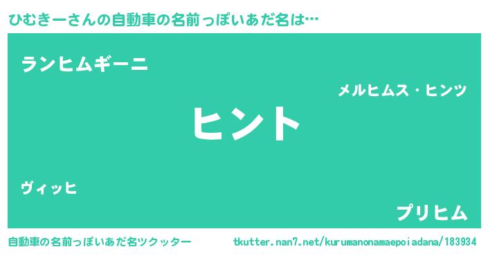 | 男性向けラノベタイトル風あだ名 | 『ひむきーの嫁は女の子じゃないと思った?』 |