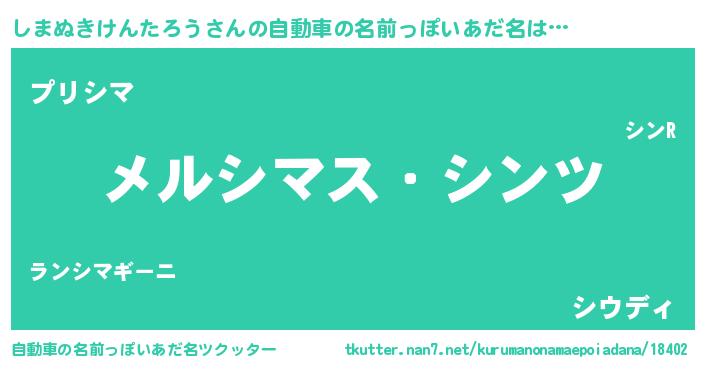 | 意味不明あだ名 | 『自称しまぬきけんたろう』 |