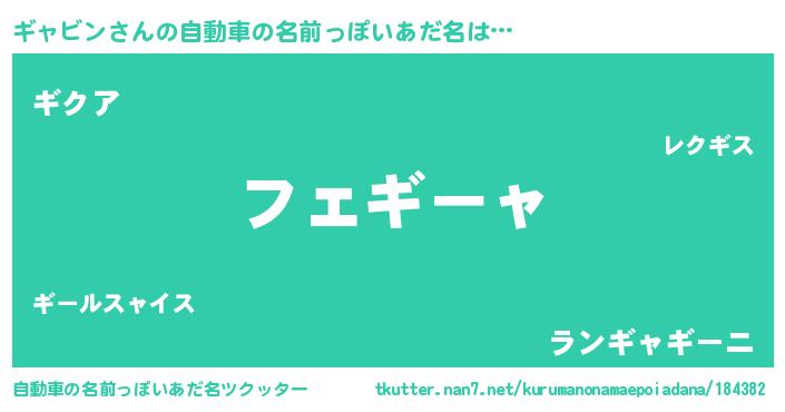 | 男性向けラノベタイトル風あだ名 | 『緋弾のギャビン』『ギャビンスレイヤー』 |