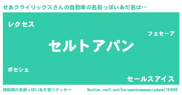| 胡散臭い通販商品みたいなあだ名 | 『信頼と実績のサプリメント…その名も「せあクライリックス」』 |
