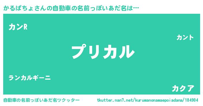 | 男性向けラノベタイトル風あだ名 | 『かるぱちょの憂鬱』 |