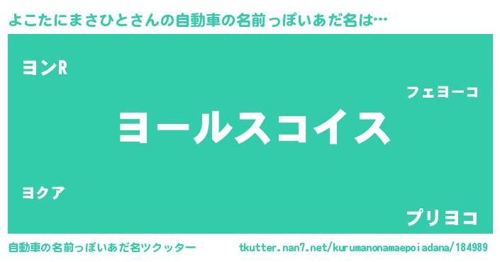 | 男性向けラノベタイトル風あだ名 | 『ヨコタニマサヒトスレイヤー』 |