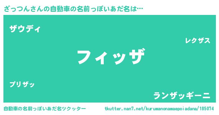 ざっつんさんの自動車の名前っぽいあだ名は… 『フィッザ』『ザウディ』『ランザッギーニ』 ツクッター #自動車の名前っぽいあだ名ツクッター http://tkutter.nan7.net/kurumanonamaepoiadana/185074/