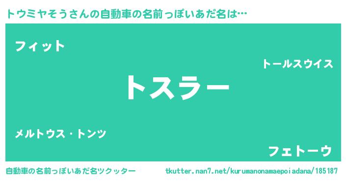 | 欧米人風あだ名 | 『トウミヤそうクリステル』 |