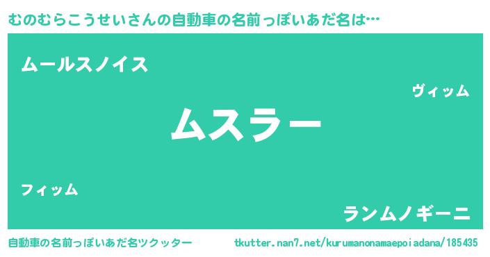 | 欧米人風あだ名 | 『むのむらこうせいクリステル』 |