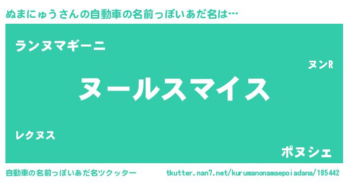 ぬまにゅうさんの自動車の名前っぽいあだ名をツクッター!