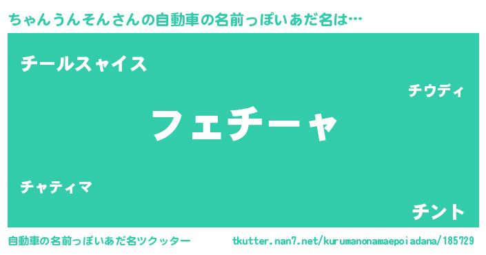 | 男性向けラノベタイトル風あだ名 | 『うちのちゃんうんそんが世界を掌握している!』 |