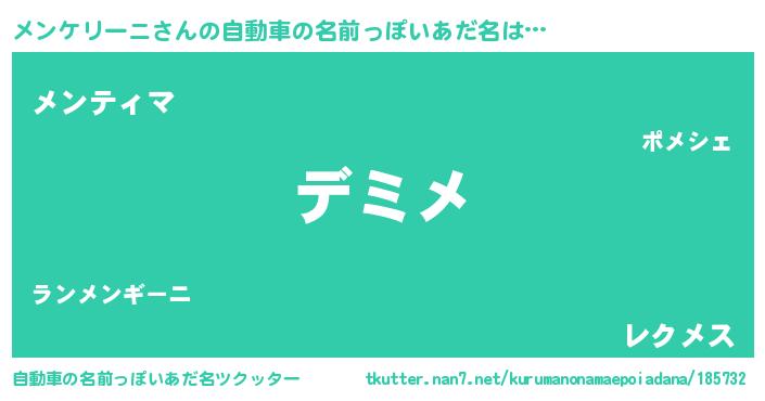 | ヘコむあだ名 | 『メンケリーニ(震え声)』『メンにゅー』 |