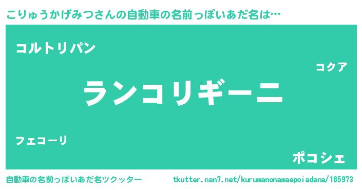 こりゅうかげみつさんの自動車の名前っぽいあだ名をツクッター!