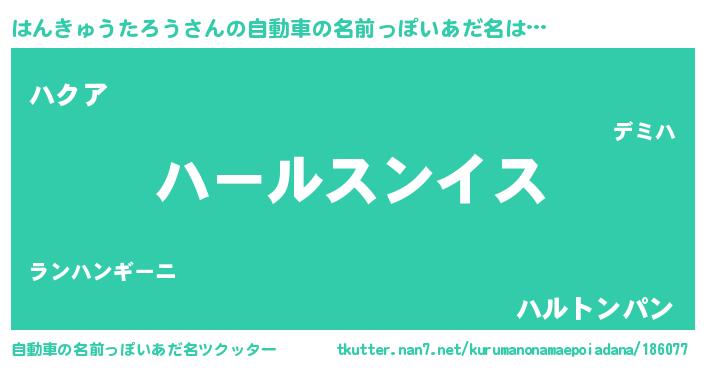 | 男性向けラノベタイトル風あだ名 | 『ハンキュウタロウスレイヤー』 |