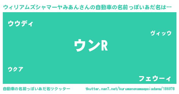 | 男性向けラノベタイトル風あだ名 | 『ノーゲーム・ノーウィリアムズシャマーヤミアン』 |