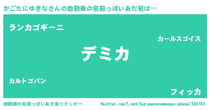かごたにゆきなさんの自動車の名前っぽいあだ名をツクッター!