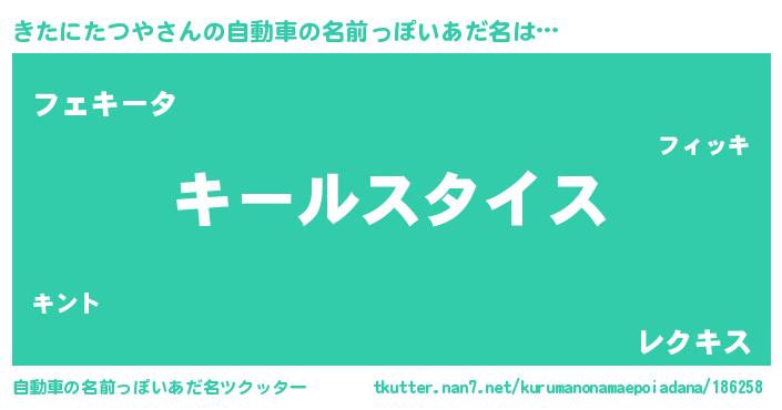 きたにたつやさんの自動車の名前っぽいあだ名をツクッター!
