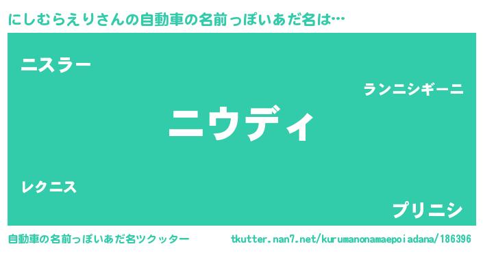 | 意味不明あだ名 | 『住所不定無職にしむらえり(68歳)』 |