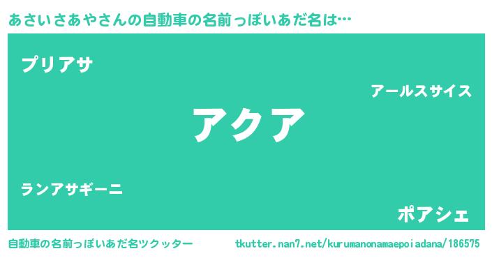 | 女子向けラノベタイトル風あだ名 | 『あさいさあやの雑貨屋さん』 |