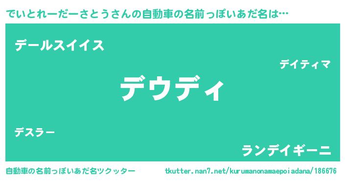 | 意味不明あだ名 | 『住所不定無職でいとれーだーさとう(84歳)』 |