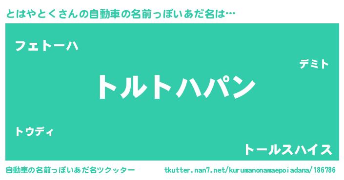 | 胡散臭い通販商品みたいなあだ名 | 『信頼と実績のサプリメント…その名も「とはやとく」』 |