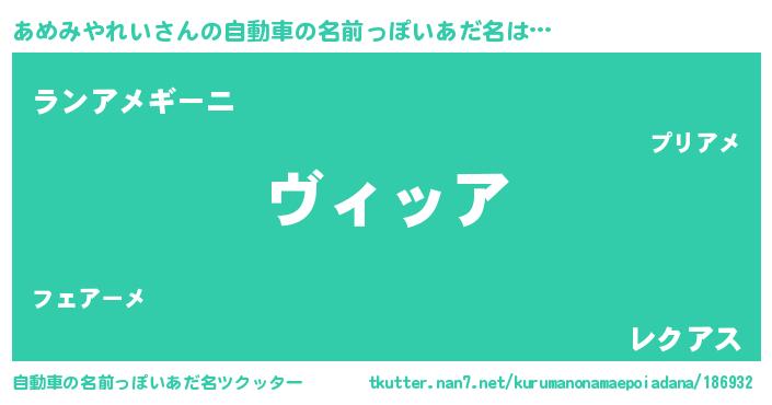 | ヘコむあだ名 | 『あめみやれい(小並感)』『あめにゅー』 |