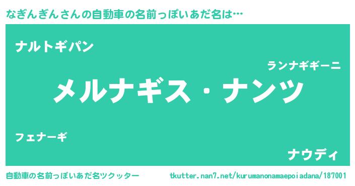 | 男性向けラノベタイトル風あだ名 | 『Re:なぎんぎんから始める異世界生活』 |