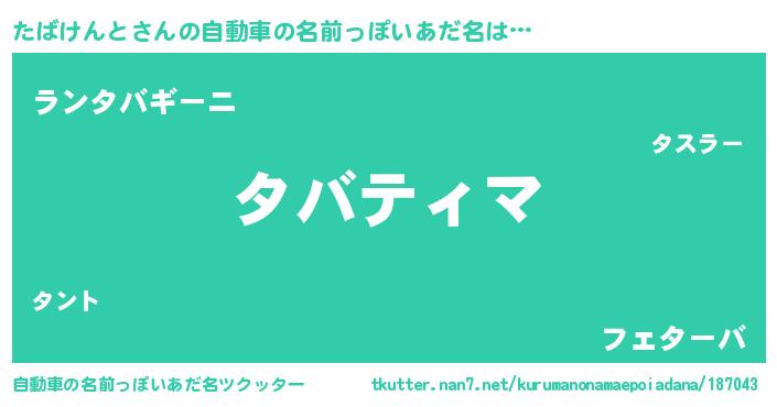 | 意味不明あだ名 | 『ペロリンたばけんと』『自称たばけんと』 |