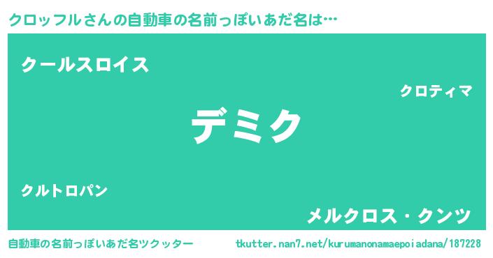 | 意味不明あだ名 | 『永久保存クロッフル』『自称クロッフル』 |