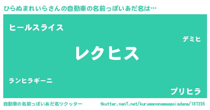| 意味不明あだ名 | 『自称ひらぬまれいら』 |
