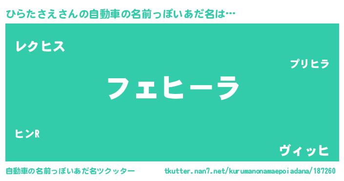 | 意味不明あだ名 | 『自称ひらたさえ』『永久保存ひらたさえ』 |