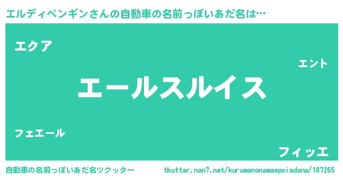 エルディペンギンさんの自動車の名前っぽいあだ名をツクッター!