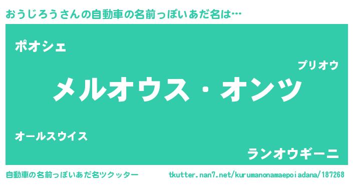 | 男性向けラノベタイトル風あだ名 | 『Re:おうじろうから始める異世界生活』 |