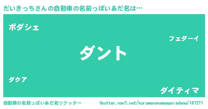 | 男性向けラノベタイトル風あだ名 | 『だいきっちの嫁は女の子じゃないと思った?』 |