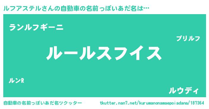 | ヘコむあだ名 | 『ルフっふぃ~』『ルフアステル(遠い目)』 |