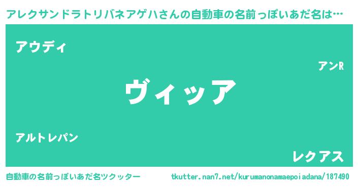 欧米人風あだ名 | 『ダルビッシュアレクサンドラトリバネアゲハ』 |