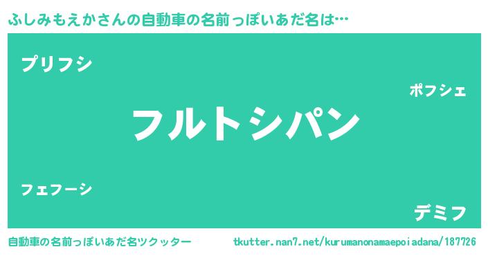| 胡散臭い通販商品みたいなあだ名 | 『信頼と実績のサプリメント…その名も「ふしみもえか」』 |