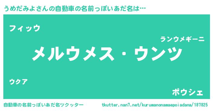 | 男性向けラノベタイトル風あだ名 | 『Re:うめだみよから始める異世界生活』 |