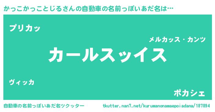 男性向けラノベタイトル風あだ名 | 『転生したらかっこかっことじるだった件』 |