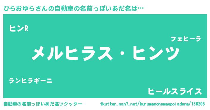 | 男性向けラノベタイトル風あだ名 | 『Re:ひらおゆらから始める異世界生活』 |