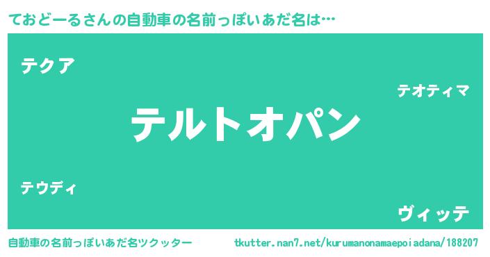 | 胡散臭い通販商品みたいなあだ名 | 『信頼と実績のサプリメント…その名も「ておどーる」』 |