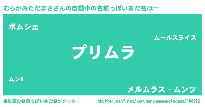 | 男性向けラノベタイトル風あだ名 | 『むらかみただまさの憂鬱』 |