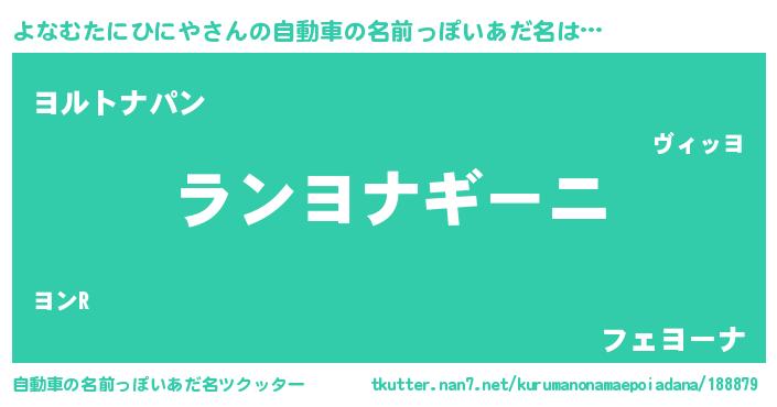| ポケモン風あだ名 | 『ヨナゴンZ』『ヒヨナムタニヒニヤ』 |
