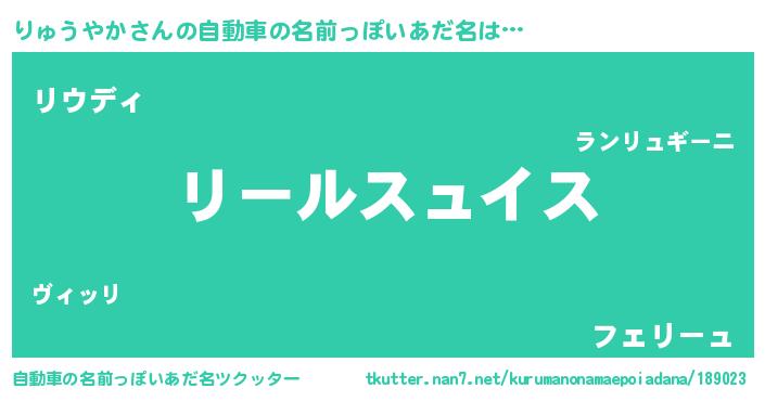 | 男性向けラノベタイトル風あだ名 | 『転生したらりゅうやかだった件』 |