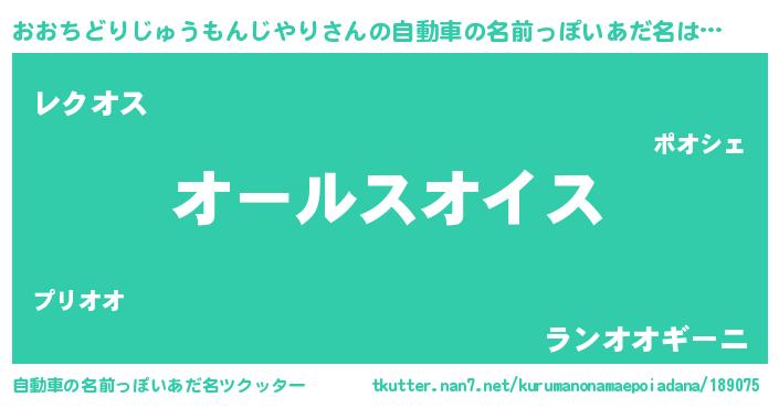 | 男性向けラノベタイトル風あだ名 | 『オオチドリジュウモンジヤリスレイヤー』 |