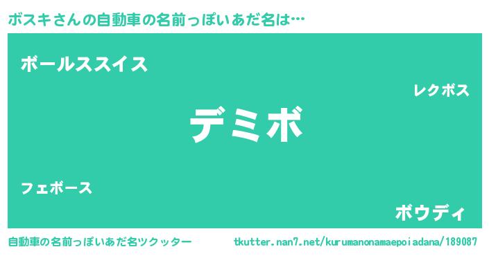 | 男性向けラノベタイトル風あだ名 | 『ボスキという概念が存在しない退屈な世界 』 |