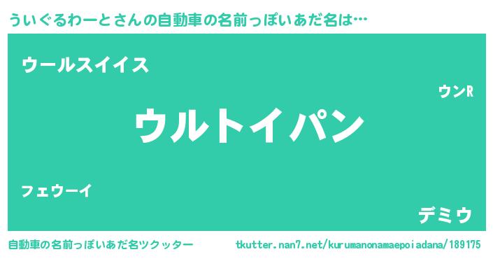 | 意味不明あだ名 | 『とにかく怪しいういぐるわーと』 |