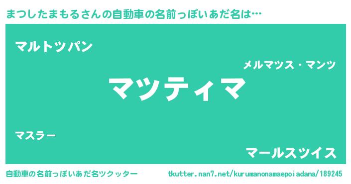 | ポケモン風あだ名 | 『マツチュウ』『ヒマツシタマモル』 |