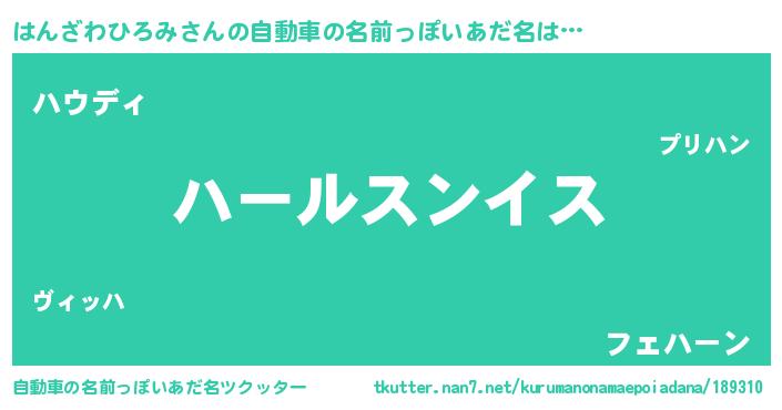 | 男性向けラノベタイトル風あだ名 | 『転生したらはんざわひろみだった件』 |