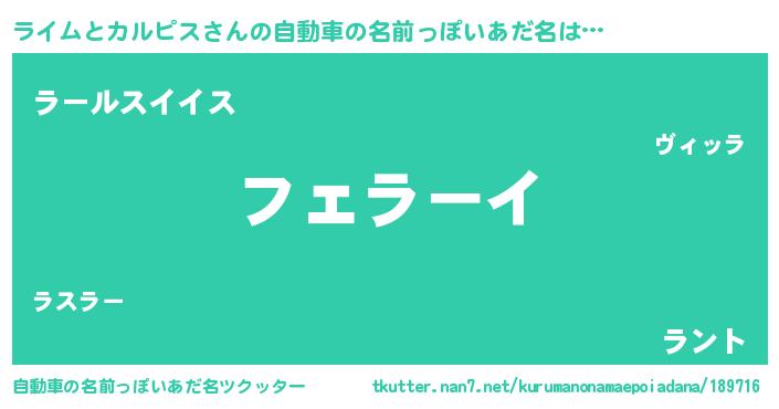 | 意味不明あだ名 | 『ニラ科ライムとカルピス属』 |