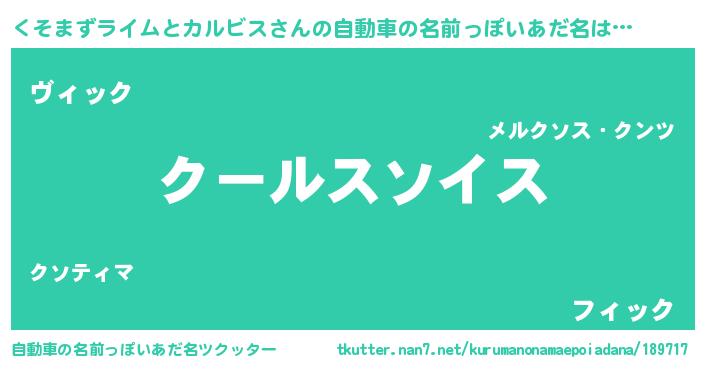 | 欧米人風あだ名 | 『トリンドルくそまずライムとカルビス』 |