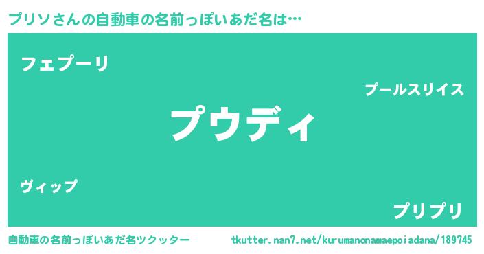 | 意味不明あだ名 | 『住所不定無職プリソ(2歳)』 |