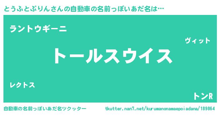 | 男性向けラノベタイトル風あだ名 | 『とうふとぷりん~年齢イコール彼女いない歴の魔法使い~』 |