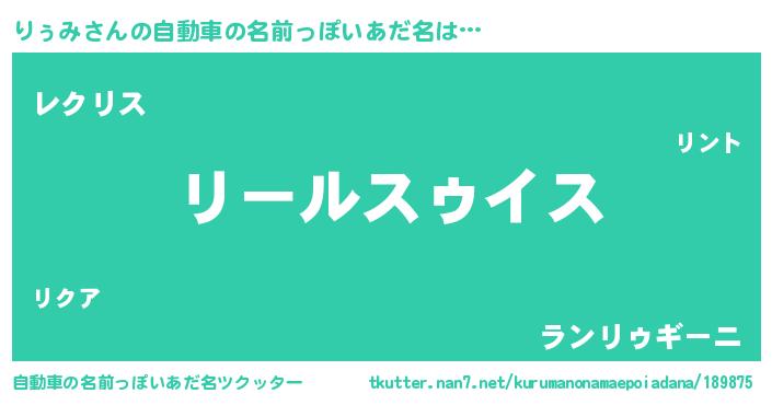 | 男性向けラノベタイトル風あだ名 | 『りぅみ~年齢イコール彼女いない歴の魔法使い~』 |